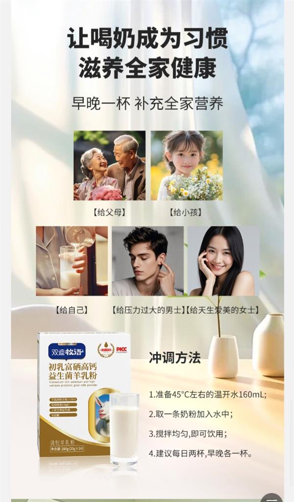 双迪牧语初乳富硒高钙益生菌羊乳粉28克*14支
