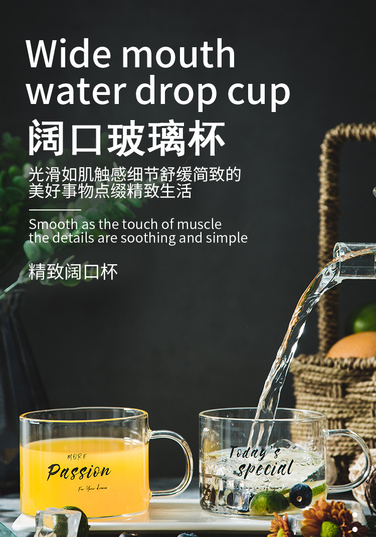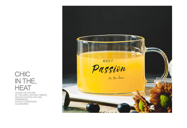 创意字母耐高温玻璃杯子大号带把马克杯办公室茶杯甜品杯早餐杯